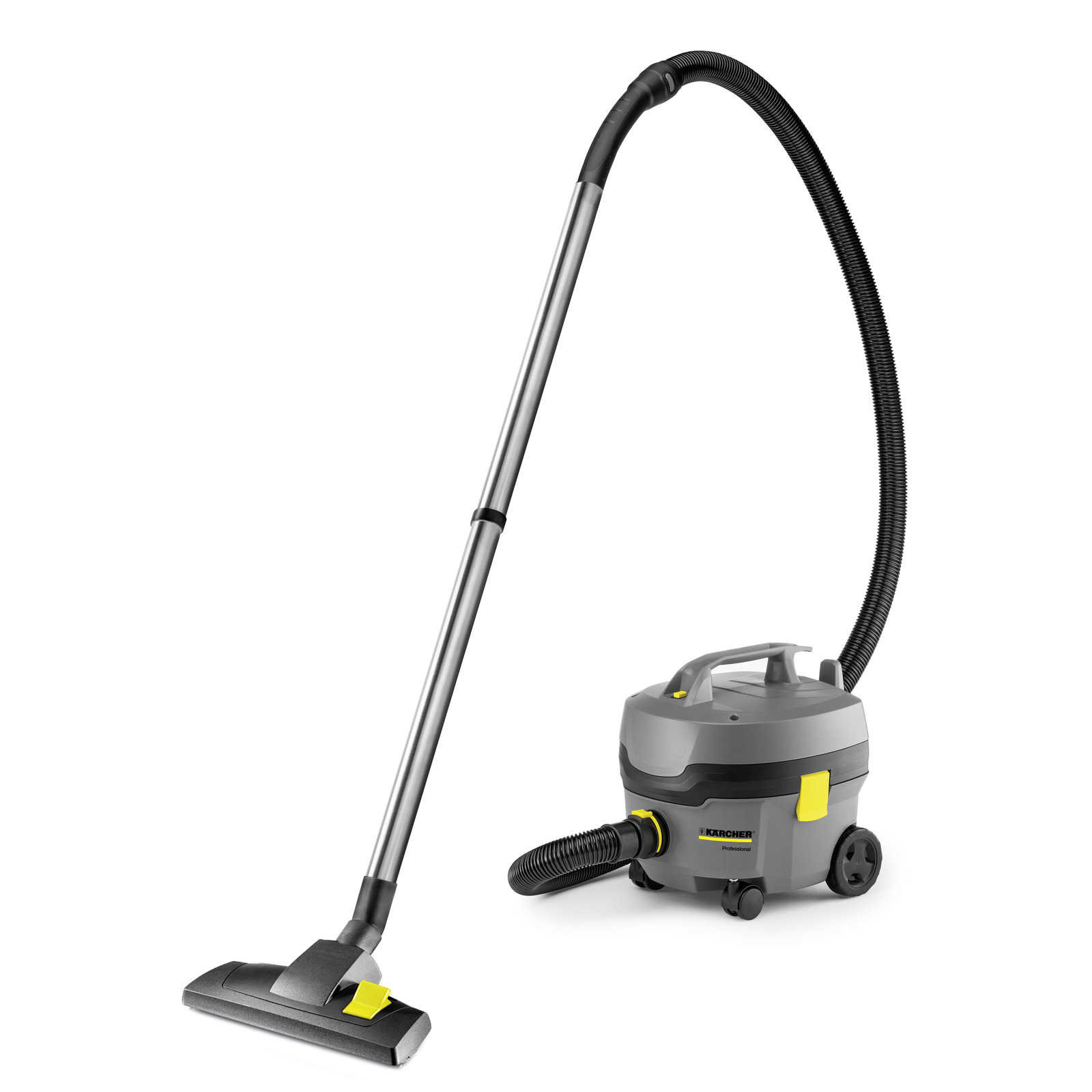 Avec 850 watts de puissance, l'aspirateur poussières de conception compacte T 7/1 Classic génère une dépression considérable de 23,0 kPa. De plus, l'aspirateur offre un fonctionnement agréablement silencieux avec seulement 63 dB(A). L'appareil dispose d'une longueur de flexible d'aspiration de 2,0 mètres et d'un poids agréablement léger de 3,5 kilogrammes. Le coude de forme maniable permet un travail prolongé sans fatigue. Équipé de 2 roues fixes et de 2 roulettes pivotantes, le châssis de l'aspirateur poussières permet de l'entraîner facilement. Un rebord pare-chocs périphérique veille à ce que la cuve résistante aux chocs d'une capacité 7,5 l n'endommage pas les meubles ou d'autres objets. Le T 7/1 Classic est équipé de série d'un sac filtrant non tissé.