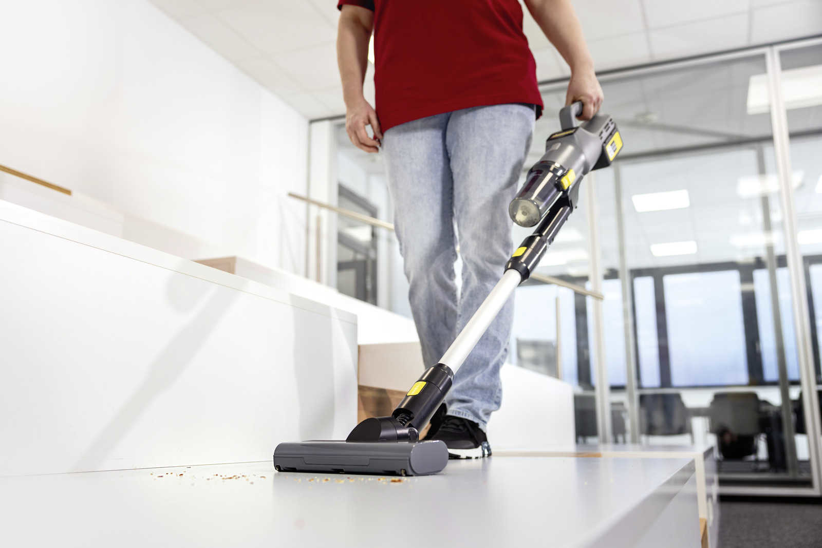 L'aspirateur poussières à batterie LVS 1/2 Bp offre une puissance d'aspiration exceptionnelle. Il est équipé d'un suceur fentes et d'une brosse active de sol (à rouleau) pour nettoyer en profondeur tous les types de sols et de surfaces textiles. La technologie de filtre cyclonique Kärcher garantit une puissance d'aspiration élevée et constante.Son design compact sans fil, sa maniabilité et sa polyvalence en font un aspirateur idéal pour l'hôtellerie, la restauration, le transport, le commerce de détail et le nettoyage de bâtiments. Il est parfait pour le nettoyage manuel, ponctuel et adapté aux escaliers grâce à sa liberté de mouvement. Le filtre HEPA 13 intégré satisfait les normes d'hygiène les plus strictes. Le LVS 1/2 Bp est facile à utiliser : sa puissance d'aspiration est réglable sur 3 niveaux, et d'un simple geste, l'aspirateur de sol se transforme en aspirateur à main pour nettoyer les textiles et différentes surfaces. Le réservoir à poussières ne nécessite aucun sac filtrant, permet de réaliser des économies et se vide de manière hygiénique. Grâce à ses puissantes batteries Kärcher de 36 V, l'aspirateur obtient d'excellents résultats de nettoyage. Remarque : la batterieet le chargeur rapide ne sont pas inclus dans la livraison et doivent être commandés séparément.