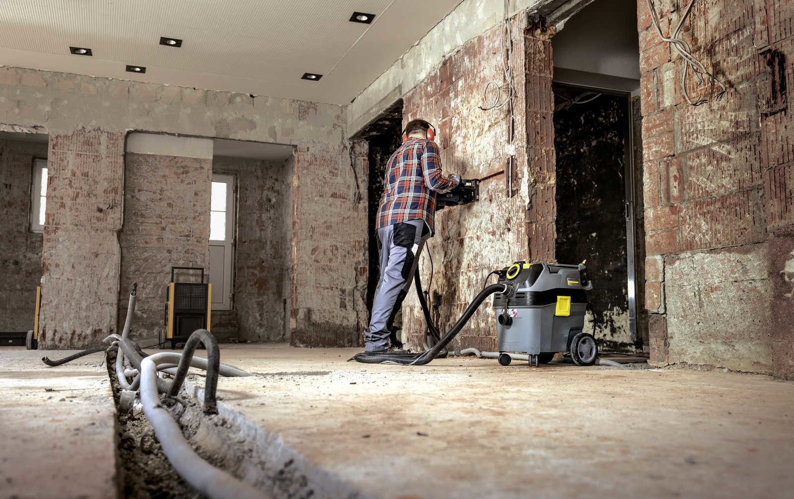 Le NT 30/1 Ap Te M élimine de manière fiable et sécurisée les poussières fines de tout type qui surviennent sur les chantiers et dans les ateliers. Cet aspirateur compact avec décolmatage semi-automatique du filtre dispose d'un filtre plissé plat « Wet & Dry » résistant à l'humidité en matériau à base de fibres PES pour l'aspiration des poussières fines, des liquides et des gros déchets de la classe de poussière M et garantit une efficacité de filtration de 99,9 %. Le connecteur intégré avec mise en marche automatique et le système antistatique complet (avec des accessoires conducteurs) prédestinent cet aspirateur à l'aspiration directe sur les outils électroportatifs produisant de la poussière. L'utilisation de l'appareil est extrêmement simple étant donné que les principaux réglages peuvent être effectués via un bouton rotatif central. Grâce à la puissance d'aspiration exceptionnelle, des domaines d'utilisation divers et variés sont possibles : travaux de meulage, travaux de montage et d'installation, élimination de liquides ou aspiration sur les machines et les installations.