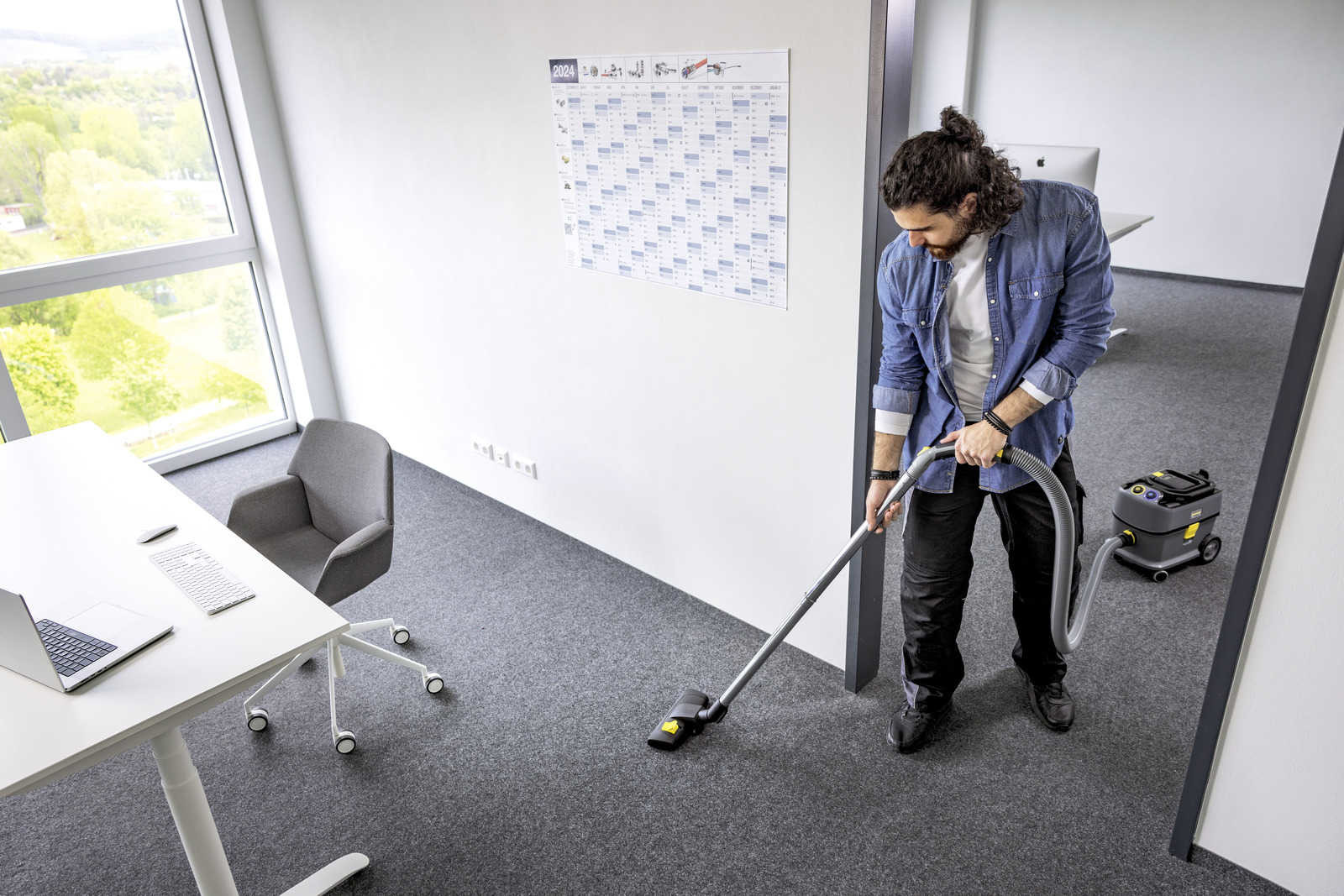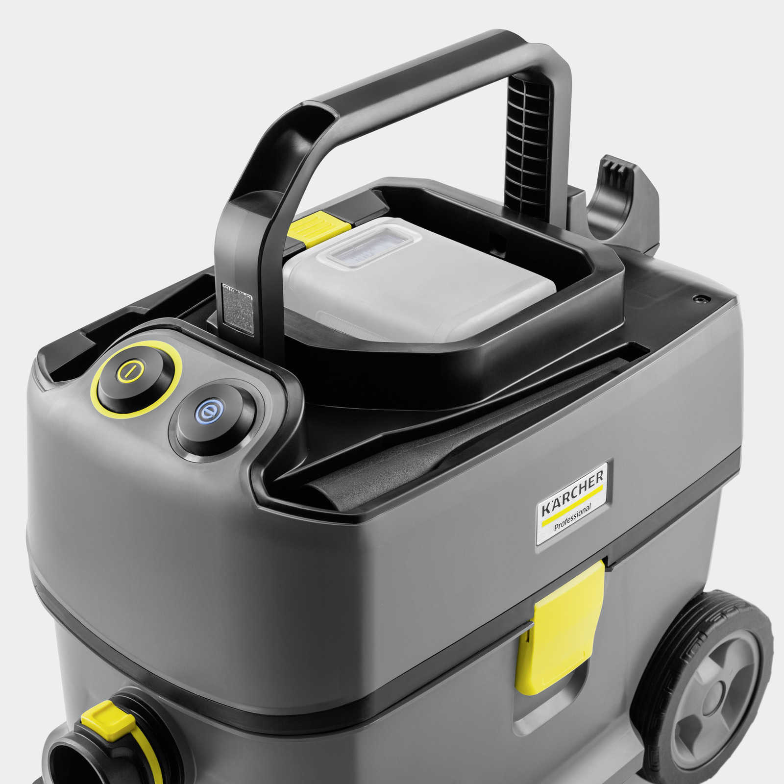 L'aspirateur poussières sans fil T 10/1 Bp HEPA de Kärcher est constitué à 45 % de matières recyclées*, ce qui permet de protéger les ressources et d'économiser de l'électricité dès la production. Il s'illustre par son excellente qualité de nettoyage, sa durabilité et un rapport qualité-prix attractif. Grâce au filtre HEPA 14, il satisfait aux normes de sécurité les plus strictes dans les lieux sensibles sur le plan de l'hygiène. Les puissantes batteries Kärcher Battery Power+ de 36 volts garantissent une puissance d'aspiration hors pair et d'excellents résultats de nettoyage. Sa longévité et sa robustesse se révèlent également au niveau du châssis, du boîtier, du pare-chocs et des grandes roues. Étant donné que le niveau sonore du T 10/1 Bp HEPA n'est que de 57 dB(A) malgré sa grande puissance d'aspiration, il peut être utilisé à tout moment dans les lieux sensibles au bruit. Cet aspirateur compact est stable et maniable et permet un transport ergonomique et près du corps à l'aide de sa poignée de transport rabattable. Le volume de la cuve de l'aspirateur s'élève à 10 litres. Le suceur pour fentes et le suceur fauteuil sont inclus et peuvent toujours être rangés à portée de mainsur l'appareil. Sur cette version de l'appareil, la batterie et le chargeur rapide correspondant doivent être commandés séparément.