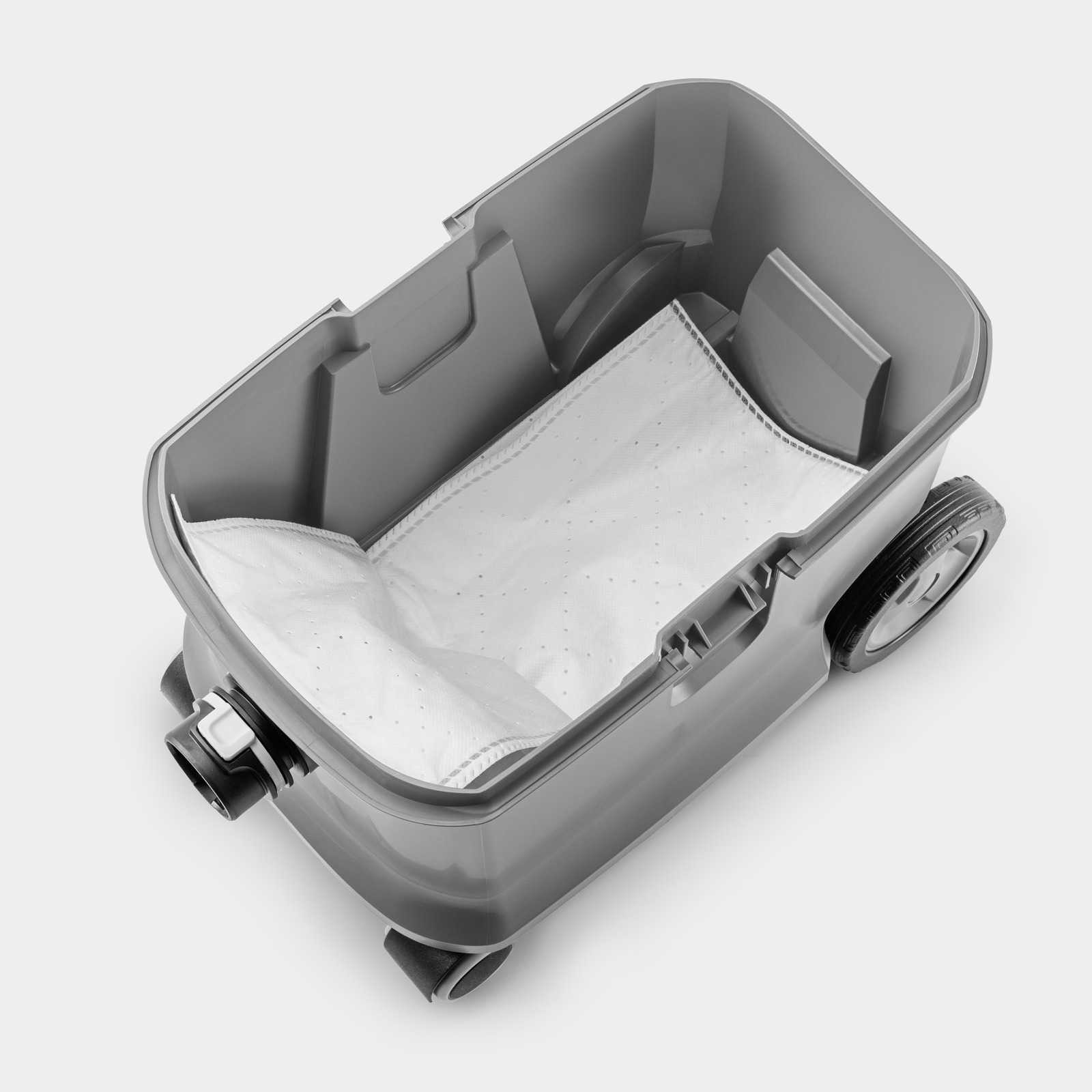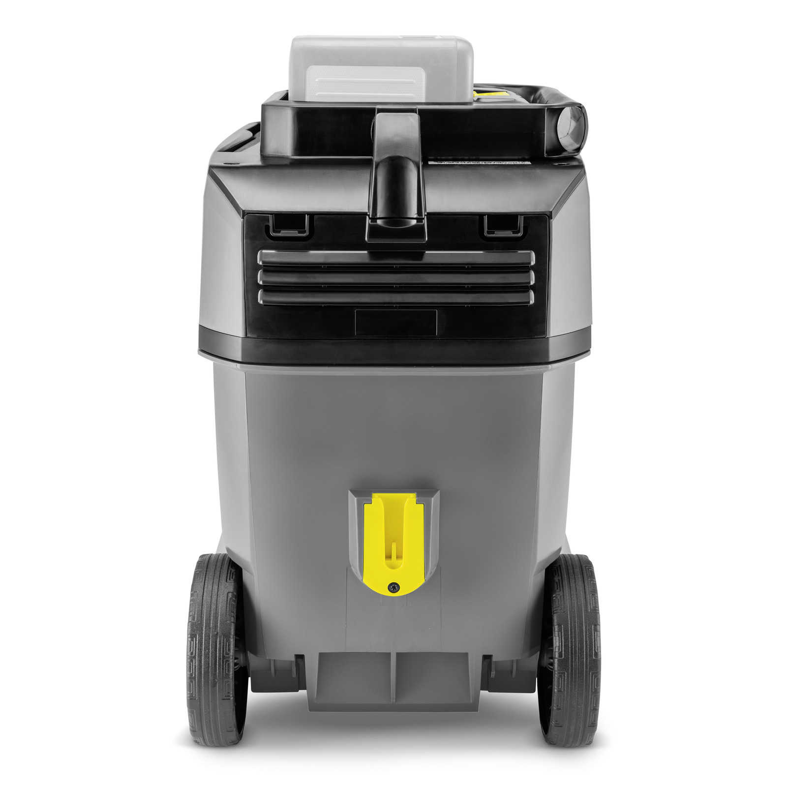 Les batteries Kärcher Battery Power+ très puissantes de 36 volts assurent d'excellents résultats de nettoyage. Malgré sa grande puissance d'aspiration, l'aspirateur fonctionne avec seulement 57 dB(A) et est donc assez silencieux pour pouvoir assurer également sans problème les missions de nuit dans les lieux sensibles au bruit. Cet appareil compact est maniable et stable et possède un volume de cuve de 15 litres. L'aspirateur fournit en outre une poignée de transport rabattable pour un transport ergonomique près du corps. Sa robustesse se révèle également au niveau du châssis, du boîtier, du pare-chocs et des grandes roues. Le suceur pour fentes et le suceur fauteuil inclus peuvent toujours être rangés à portée de main directement sur le T 15/1 Bp HEPA. En cas de commande, veuillez noter que pour cette version de l'appareil, la batterie ainsi que le chargeur rapide correspondant doivent être commandés séparément.